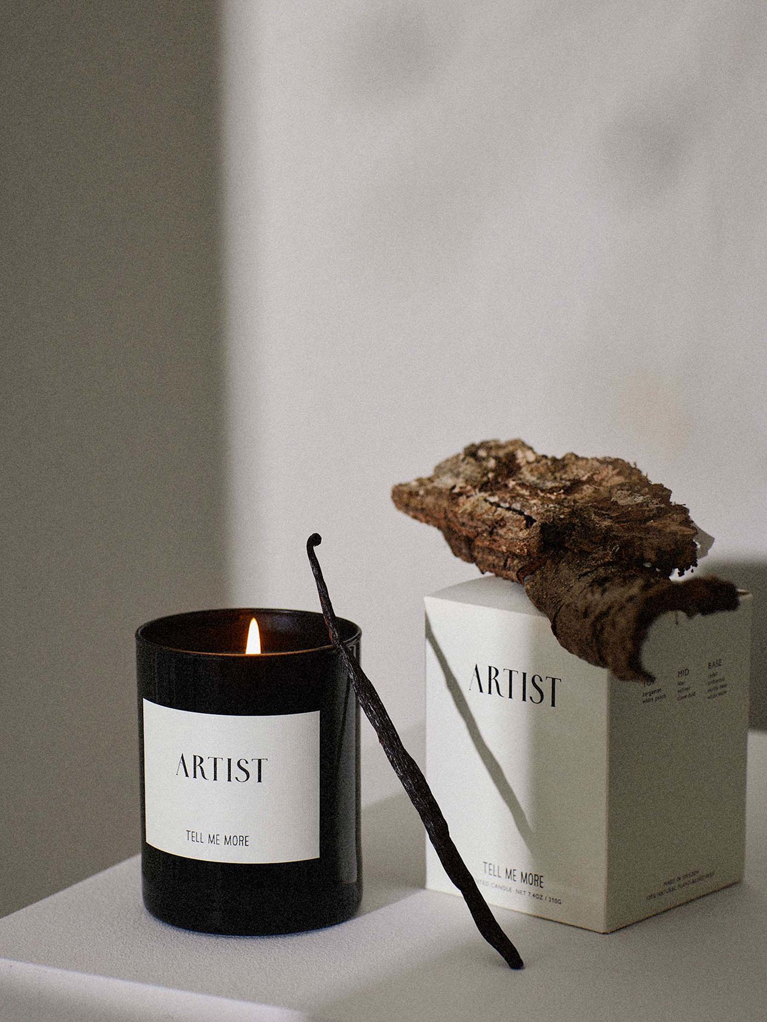 Doften Artist öppnar med en mjuk och ljus friskhet från bergamot som möter den saftiga sötman från vit persika – en krispig och samtidigt fruktigt len start. I hjärtat blommar liljan upp och ger en elegant, ren blomdoft, medan vetiver tillför ett jordigt, lätt rökigt djup. Kryddnejlika ger en subtil kryddvärme som gör doften mer karaktärsfull och konstnärligt uttrycksfull. Basen vilar på cederträ och drivved, vilket ger en mjukt träig, strandig underton. Tillsammans med vaniljstångens varma sötma och vit mysk blir avslutet rent, lent och nästintill hudnära.